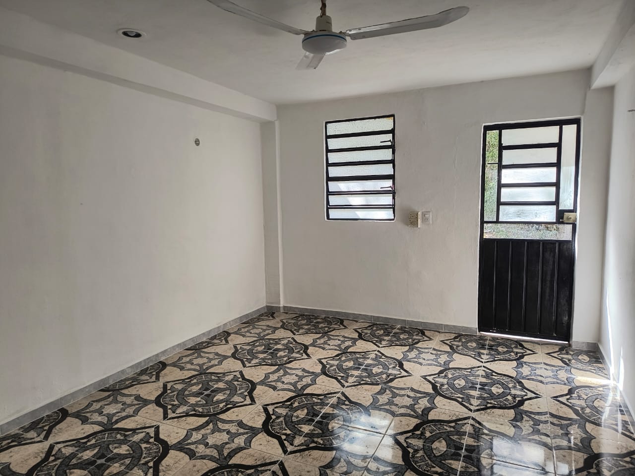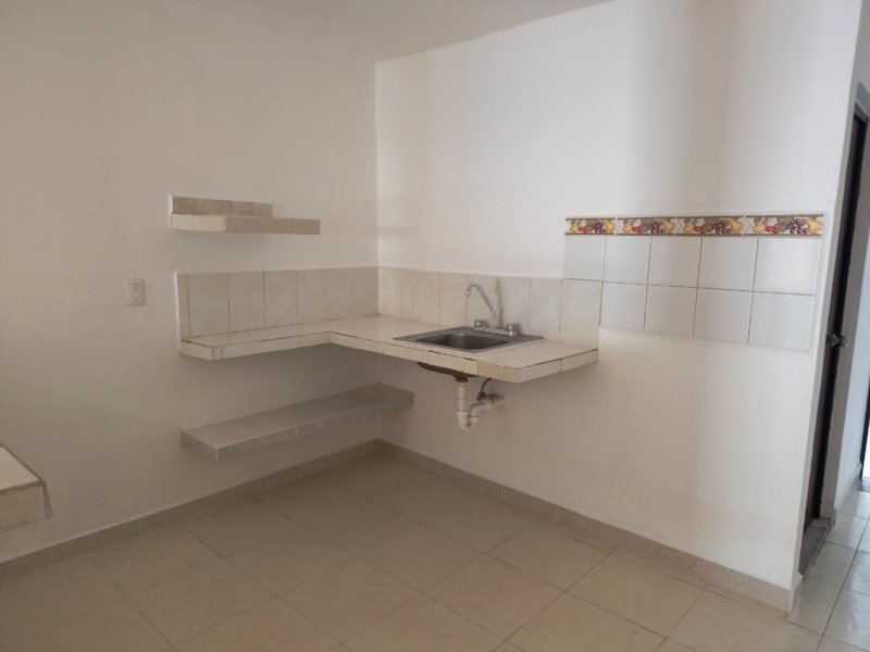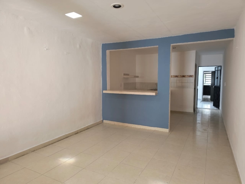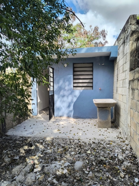 Casa de una habitación, sala comedor y cocina separados, baño, piso cerámico, bardeada, terreno de 3.4 x 43 con 71.86 metros cuadrados de construcción. Se ubica a dos calles de la avenida Jacinto Canek a la altura de la inalámbrica.